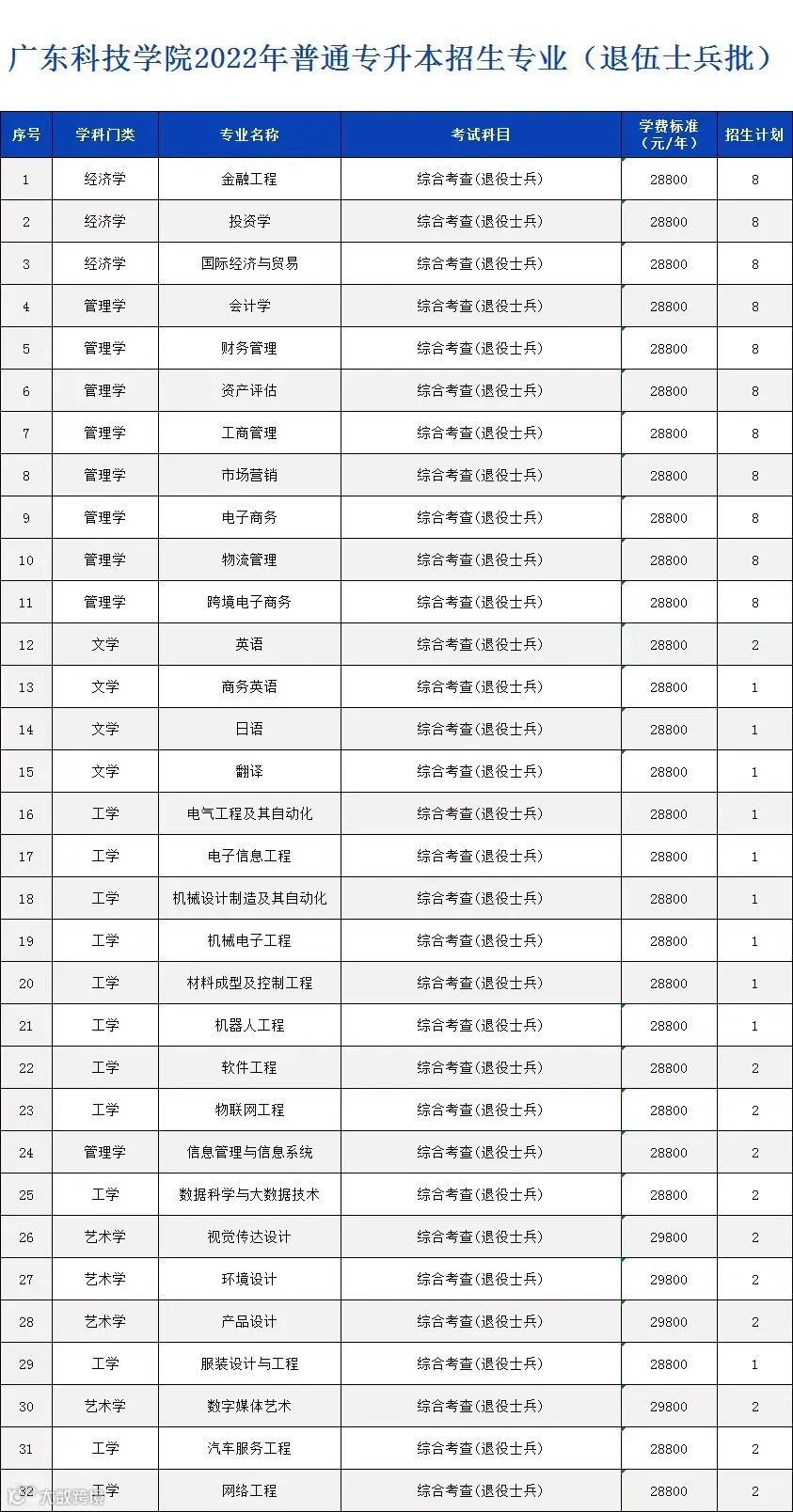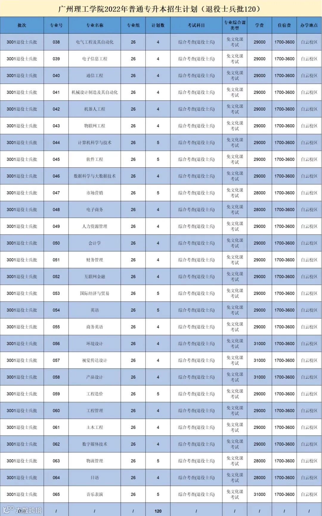 退役士兵(招生人数:120人)
