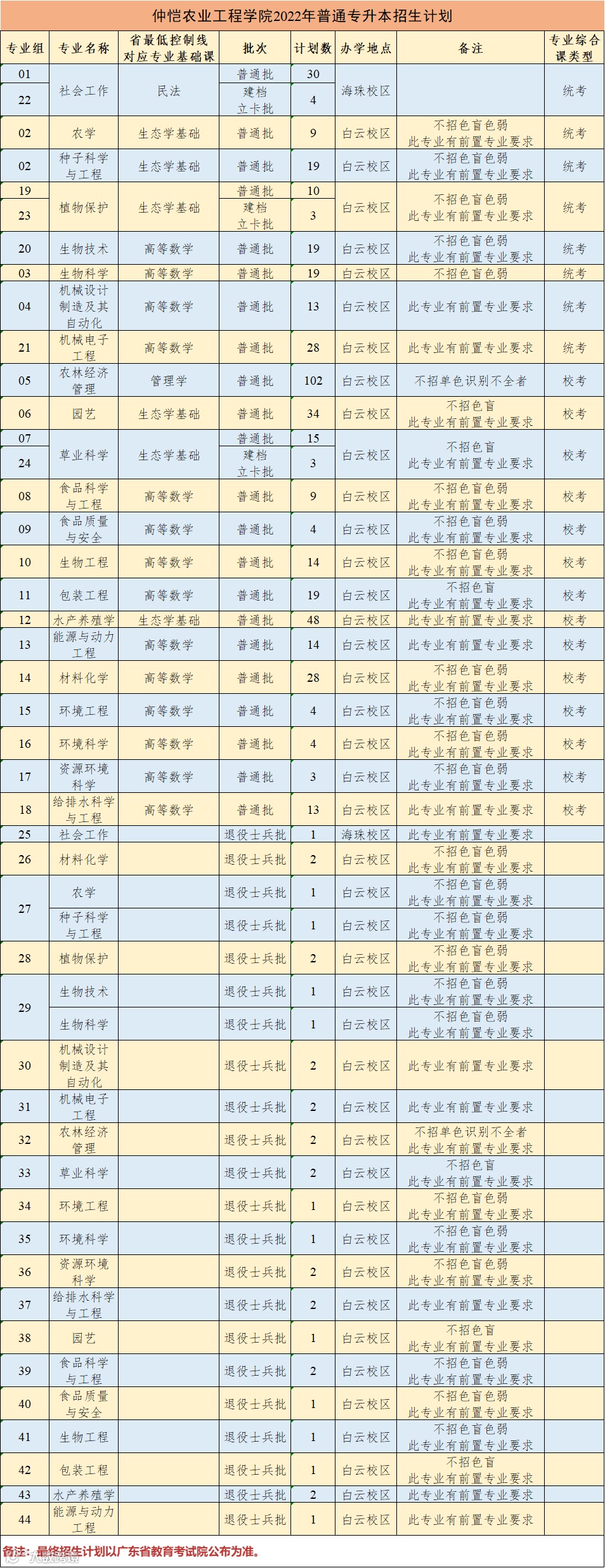 1.具体招生专业及计划数最终以广东省教育考试院公布为准。