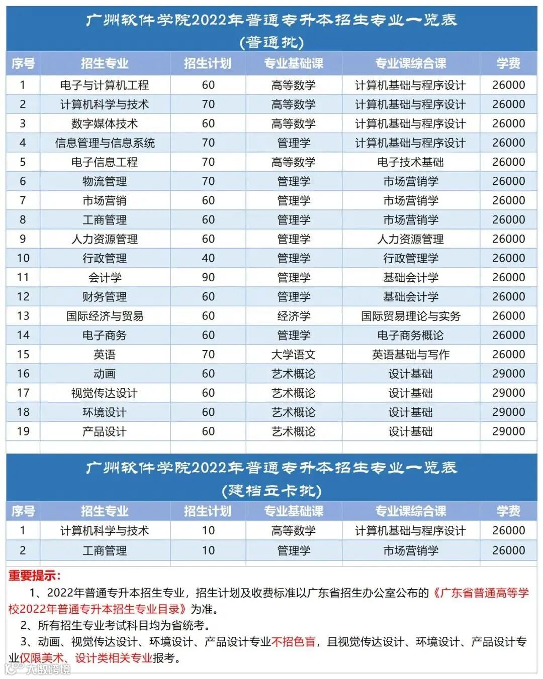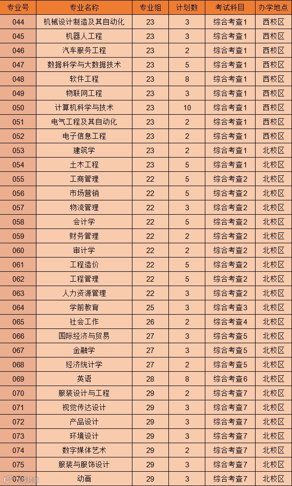 备注:视觉传达设计、产品设计、环境设计、服装设计与工程、服装与服饰设计、数字媒体艺术、动画专业不招色盲。