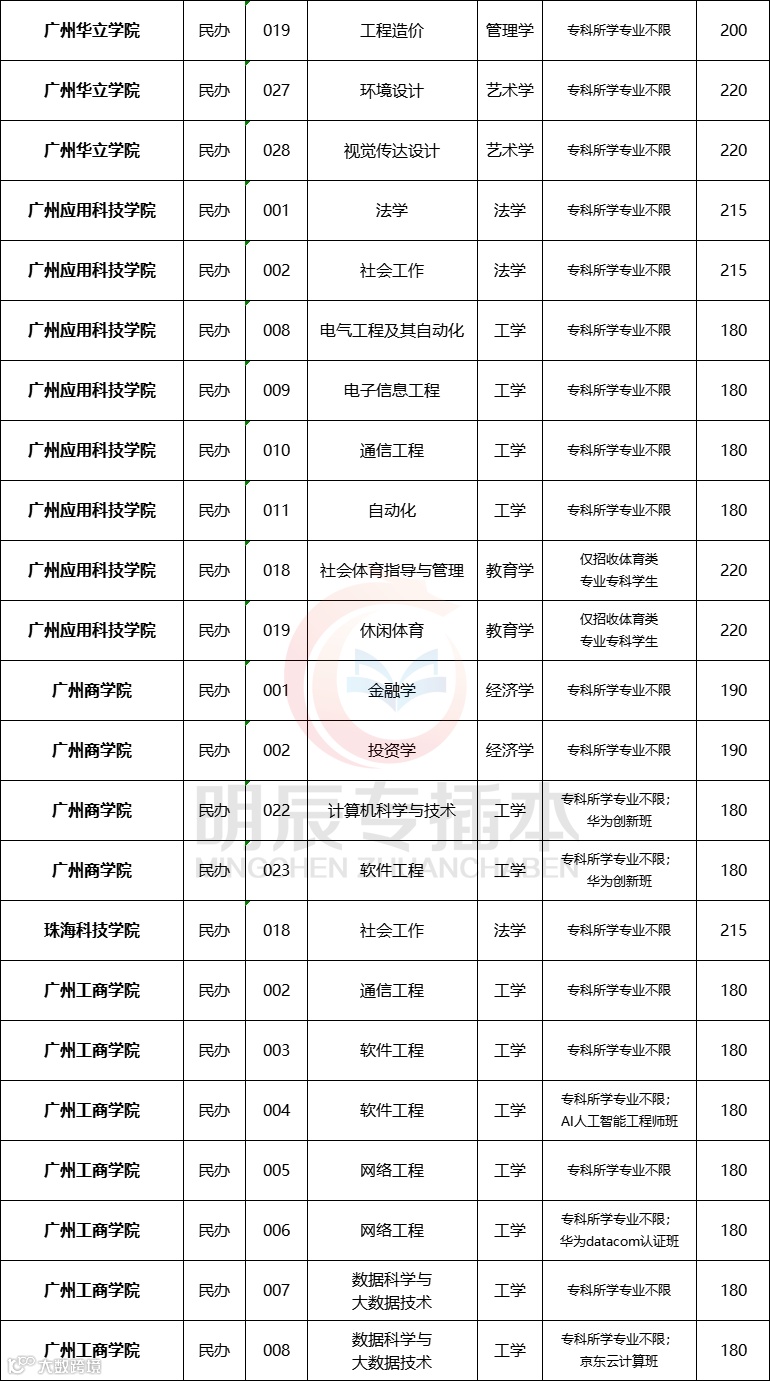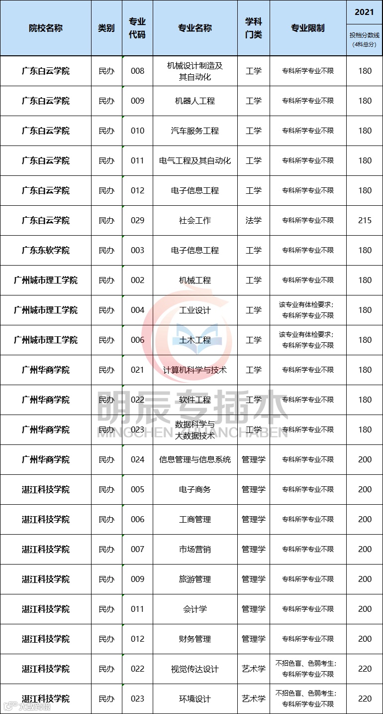 各有关高等院校,经研究决定,广东省2021年普通高等学校专升本(含三二分标段专升本专设考核)招生最低控制分数线如下: