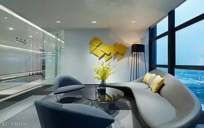 不规则简约风办公沙发搭配景观外景,给客户愉快的心情
