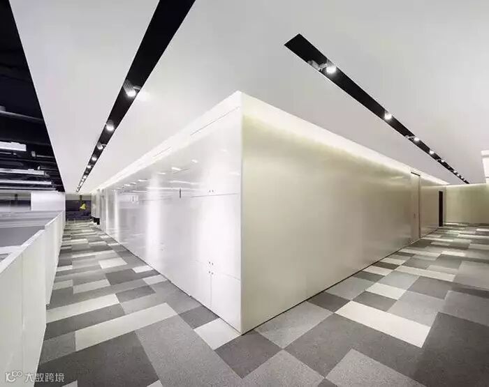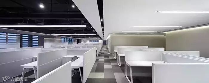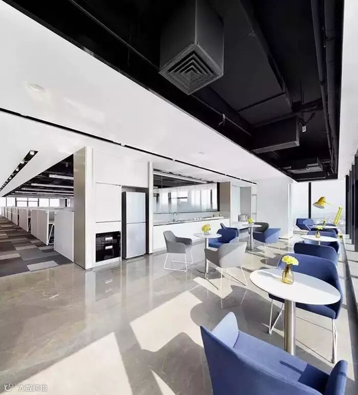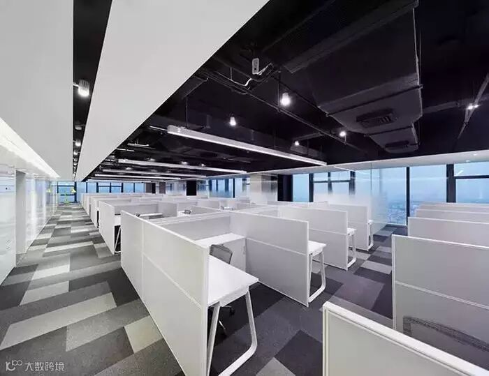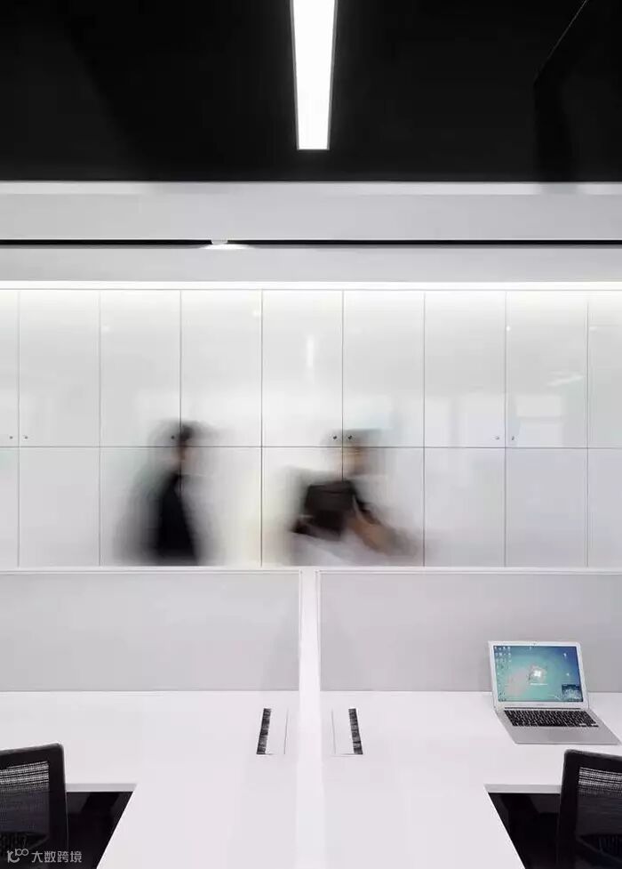 整个办公空间呈现开放式设计,由接待前台、员工办公区、会议区和高管办公区域组合而成