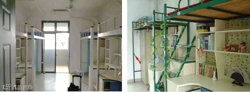 宿舍分为六人间和四人间,一般大一会先入住六人间,大二再搬到四人间。宿舍内空间足够大,空调风扇齐全,具备热水洗衣机。