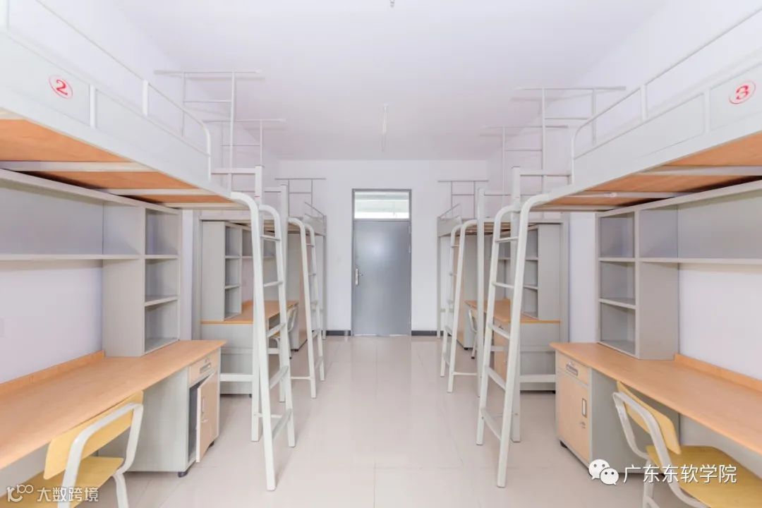 新宿舍大部分为标准四人间,每间宿舍四套上床下桌,床位长2米、宽0.9米。宿舍内部简约灰色+原木色的设计,尽显典雅。