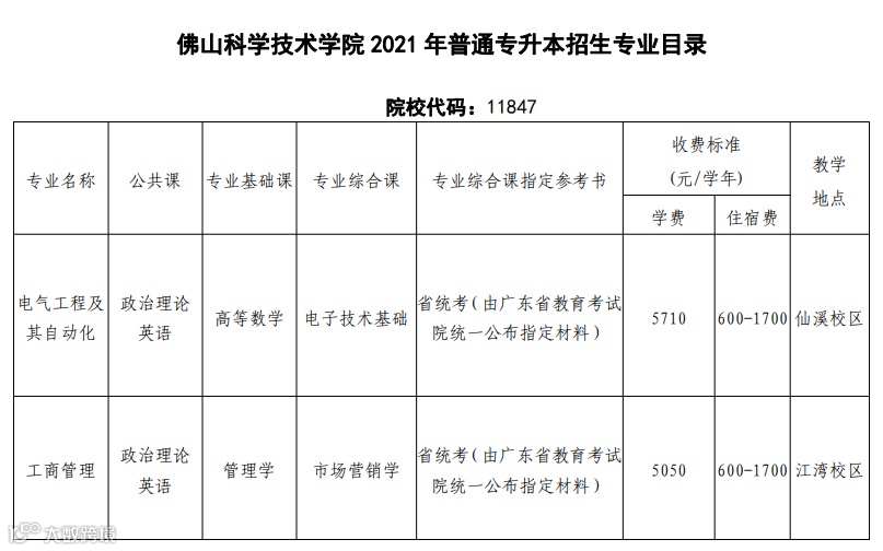 2021年佛山科学技术学院插本招生专业