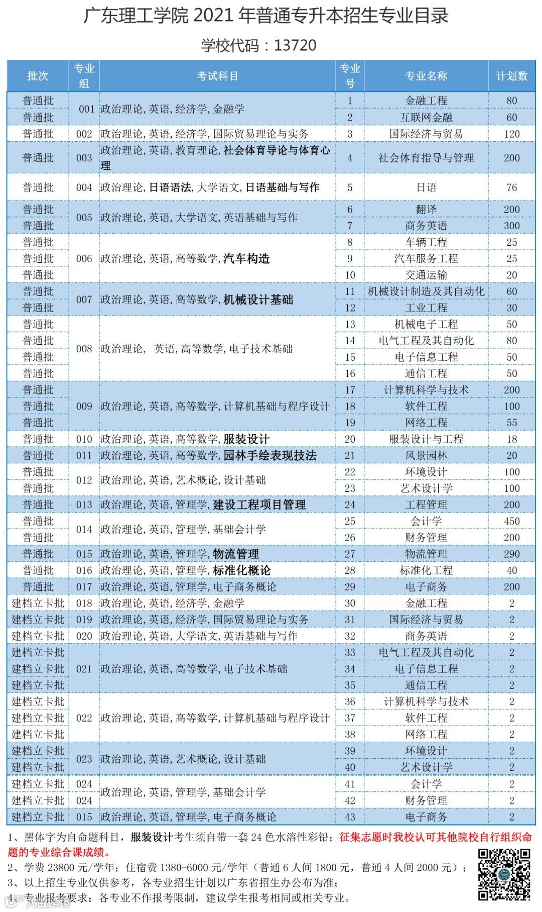 另外,广东理工学院2021年专升本招生计划有调整: