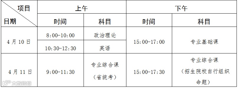 (五)普通专升本招生考试时间为2021年4月10日(星期六)至11日(星期日)两天,具体安排见下表: