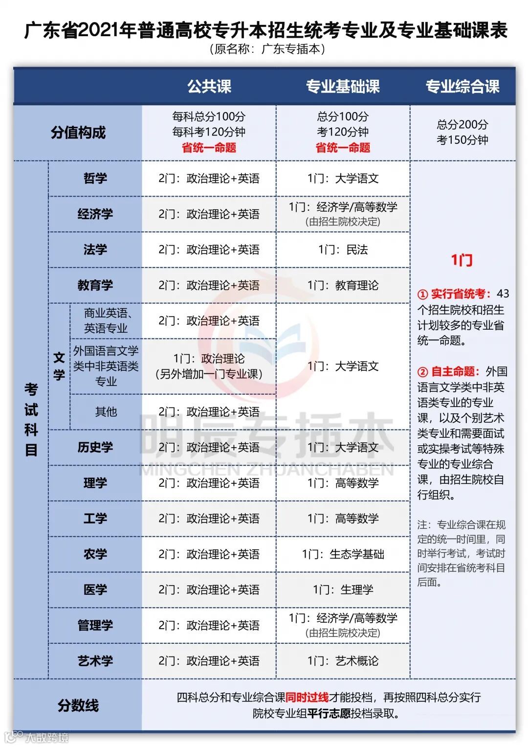 2021年普通专升本考试科目改为4门,即2门公共课+1门专业基础课+1门专业综合课(“2+1+1”模式);专业综合课一门200分,其余科目每门100分,总共500分。