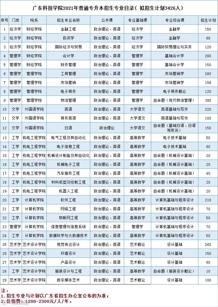 官宣 | 广东科技学院2021年普通专升本拟招生计划公布