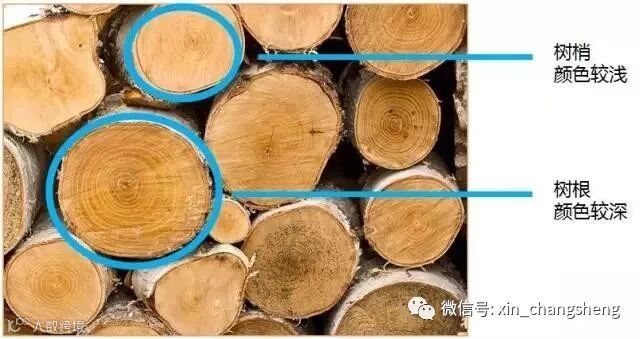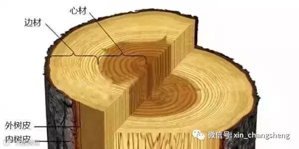 实木家具中靠近树皮的地方颜色浅、重量轻;靠近树心的地方颜色深、重量大。