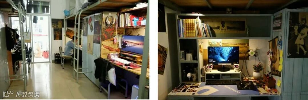 宿舍全部都是4人间,都有空调,上床下桌(本科高等院校标配),阳台,独立浴室(玫瑰园和西区是浴室洗手间一体)、洗手间,规定时间内有热水。