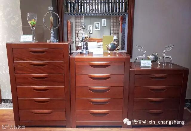 新中式实木收纳柜。这款木柜由海棠木打造,这是一种家居建材中最常见的实木材质。外层的颜色以金棕色为主,打造出中式风格。多层抽屉可以容纳各种生活用品,作为床头柜、客厅随手柜、厨房杂物柜和浴室柜都可以,非常简单也非常实用。