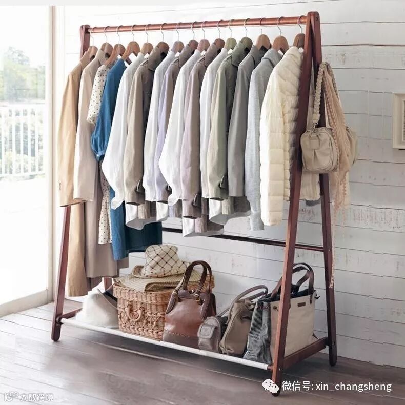 这款落地式挂衣架,能很好地帮助我们节省和规划空间。最上层可挂衣服、帽子,下层可放置包包和收纳盒,而鞋子能放在地上。东西再多,也不怕东放一些,西放一点,适合单身或者两个人一起住的多粉。
