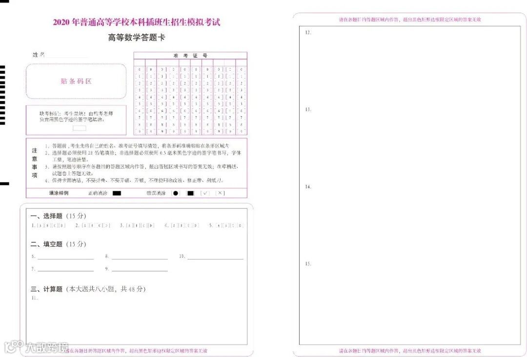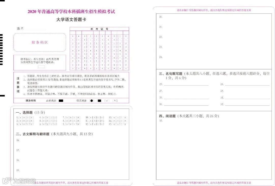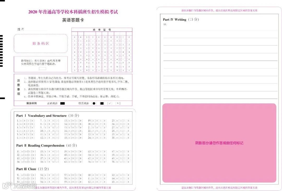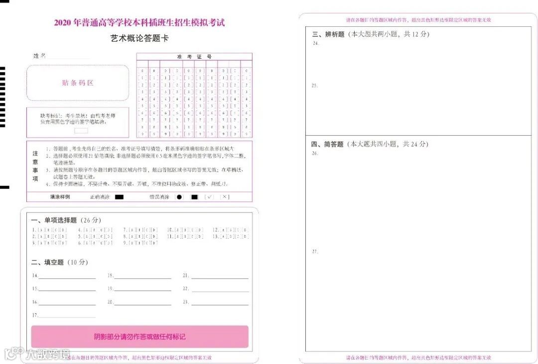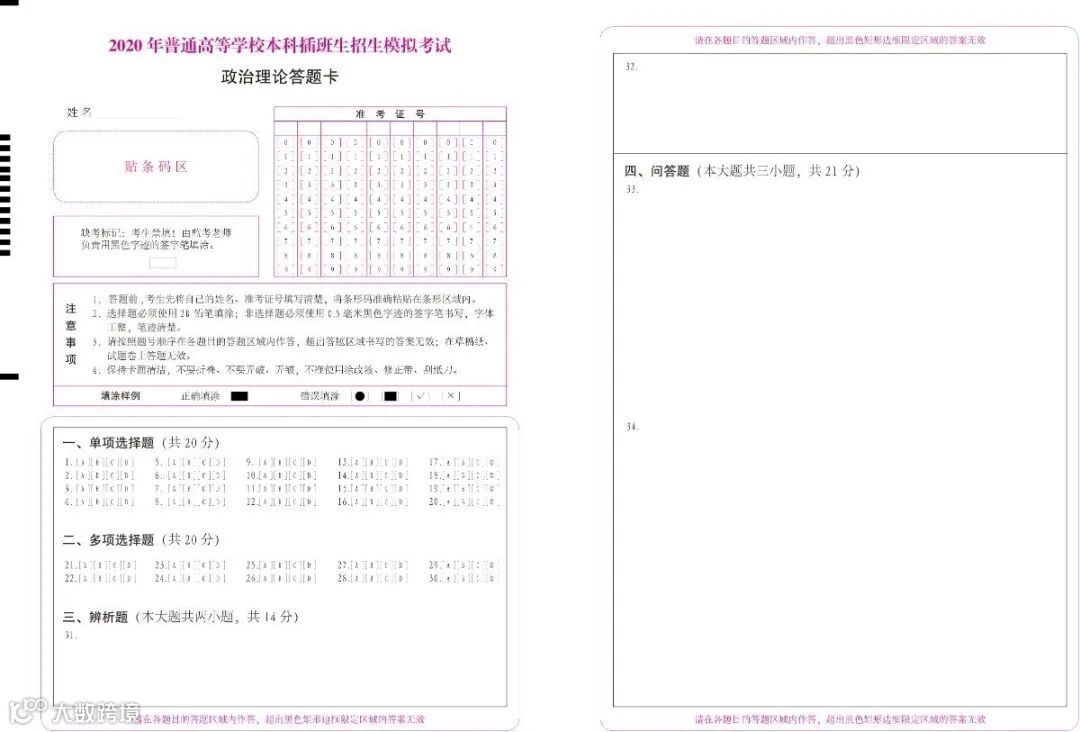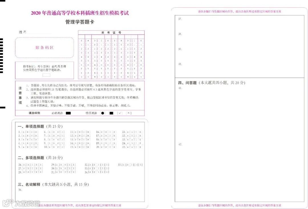 2020考试答题卡展示