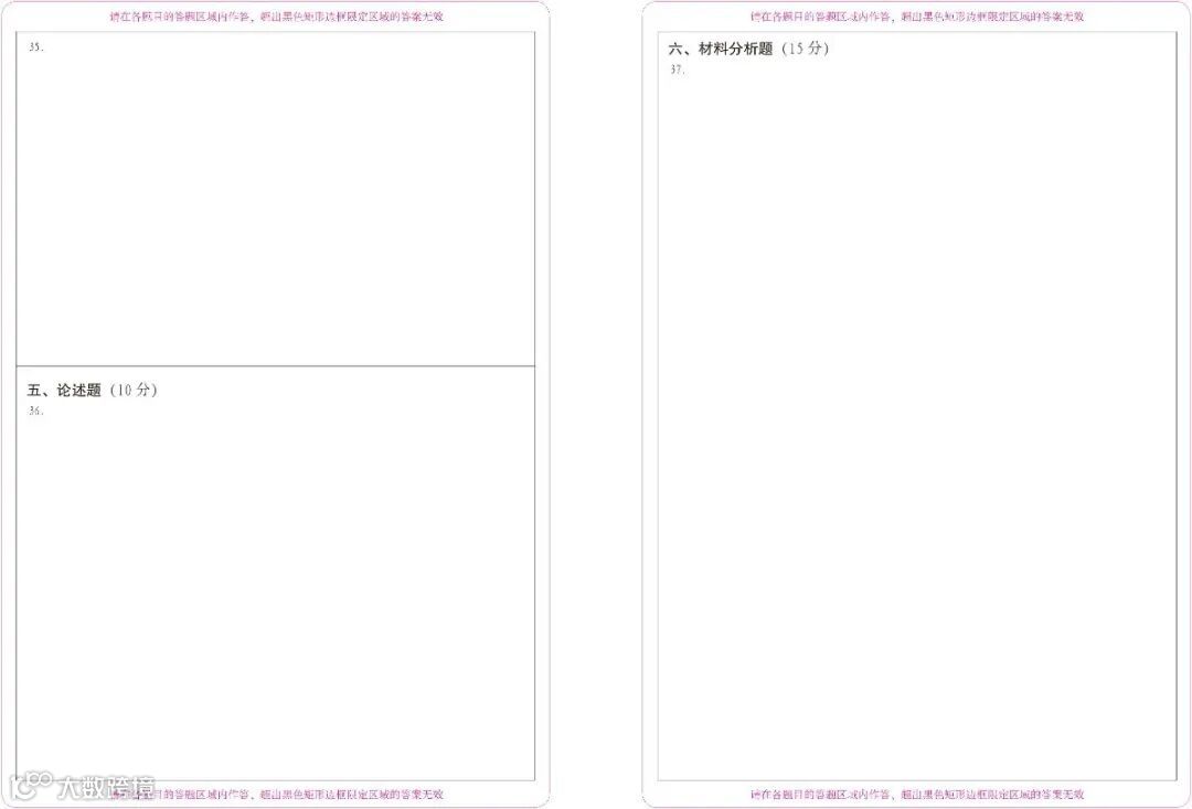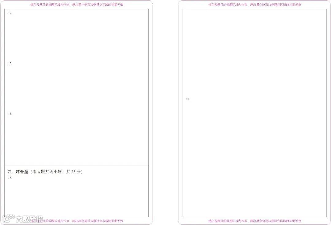 考生应在与题号相对应的答题区域答题,写在草稿纸上或非题号对应的答题区域的答案一律无效。不得用规定以外的笔和纸答题,不得在答卷(答题卡,下同)上做任何标记。