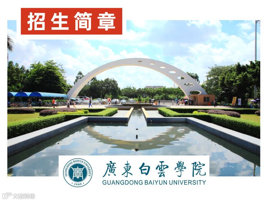 广东白云学院(Guangdong Baiyun University)坐落于广东省广州市,是经国家教育部批准成立的广东省属民办全日制普通本科高校;是中国应用技术大学联盟发起和理事单位、全国新建本科院校联盟副理事长单位、教育部数据中国“百校工程”项目院校、广东省普通本科转型试点高校、广东省第三批“易班”建设试点高校,CDIO工程教育联盟成员单位。