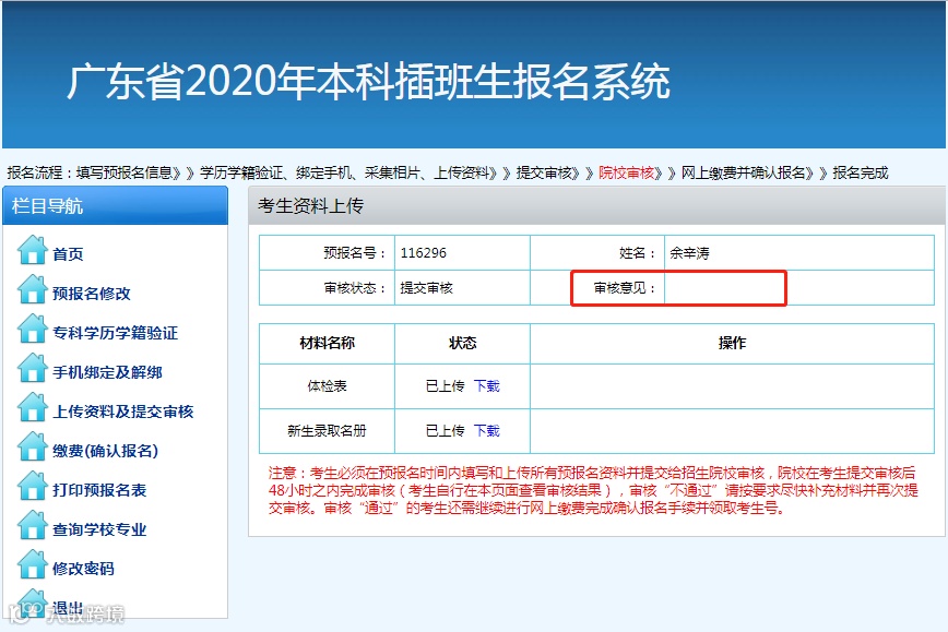 院校在考生提交审核后48小时之内完成审核(考生自行在本页面查看审核结果)。