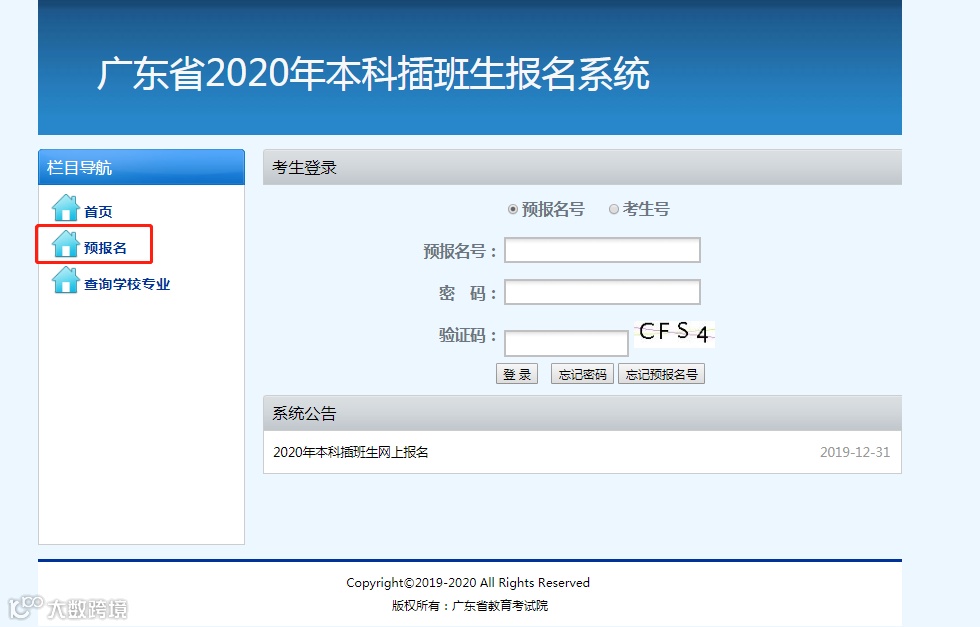 2020年报名均为网上操作,网上预报名、网上审核和网上交费。