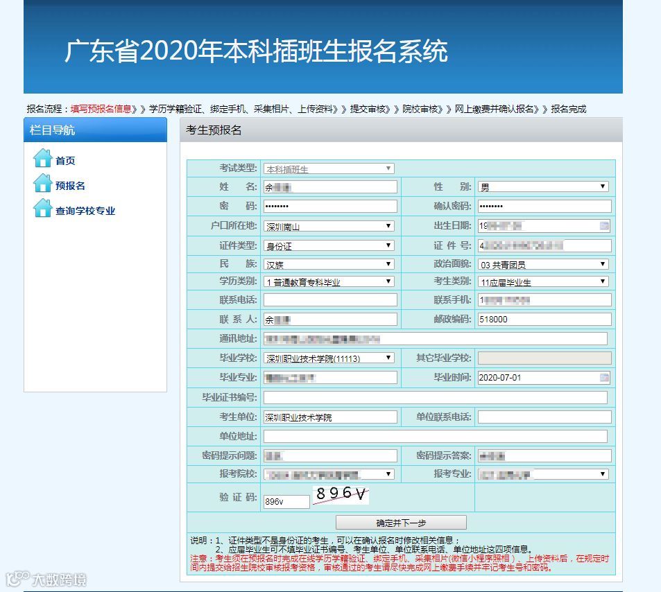 提交预报名信息,就会得到一个6位数的预报名号,一定要牢牢记住预报名号和密码!