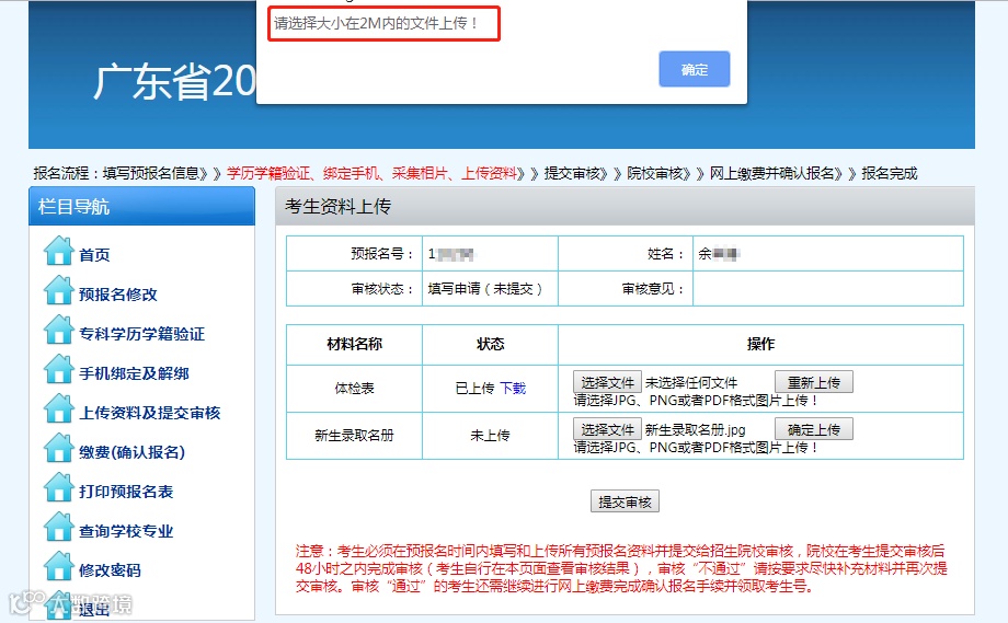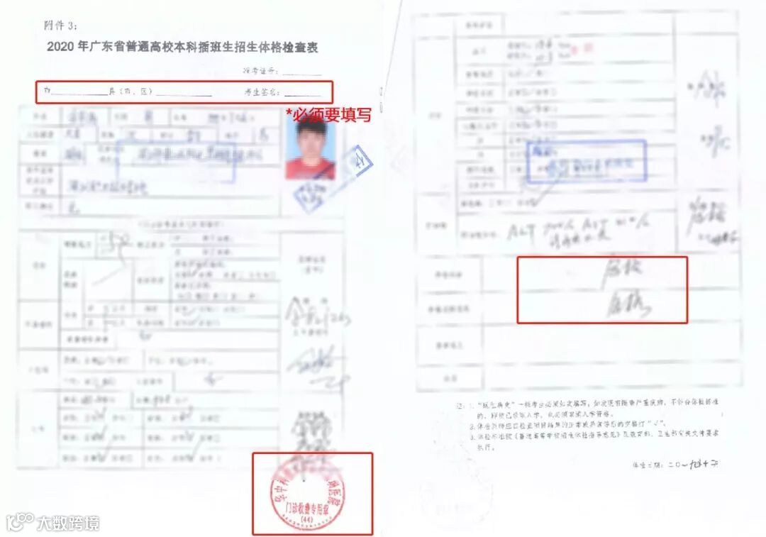 第二步:上传至广东省本科插班生网上报名系统“体检表”一栏。
