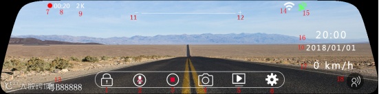 8.录像时间:正常录像下显示录像时间,默认为1分钟,可在设置界面选择循环录影更改时间,非录像状态会隐藏。