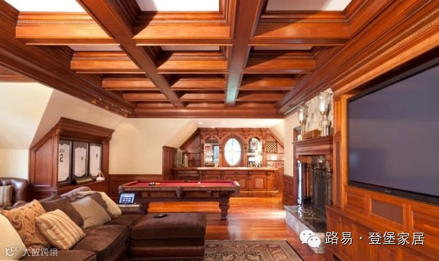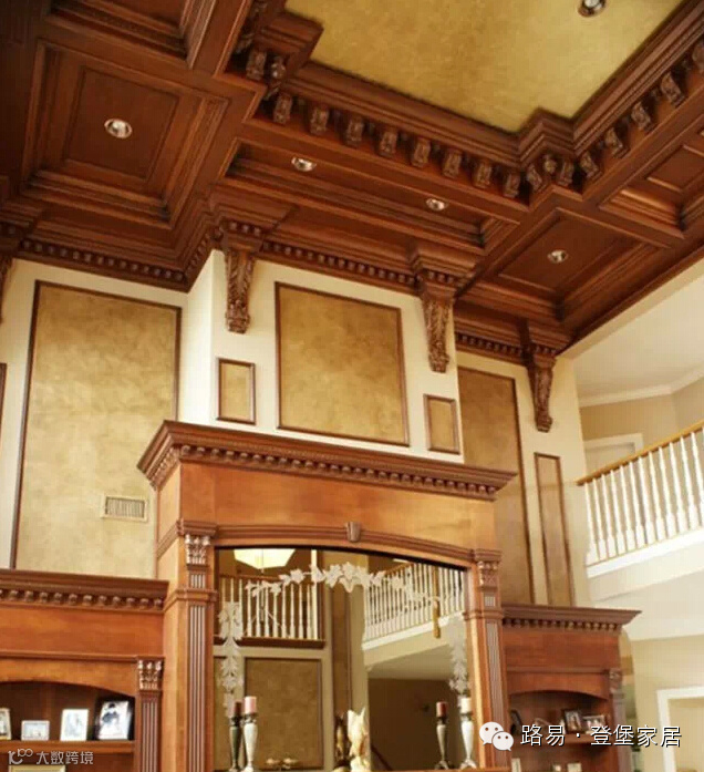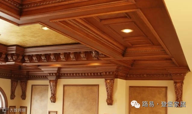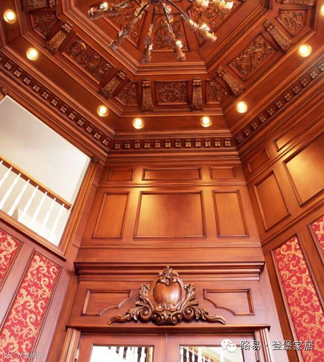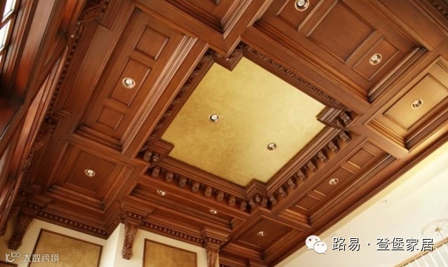 纯实木的电视背景墙,实木雕花的吊顶设计,有种复古的典雅与高贵,用流畅的线条描绘出艺术的特色,具有很强的欣赏性。