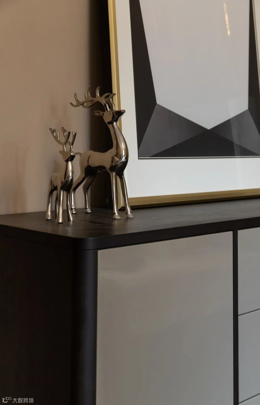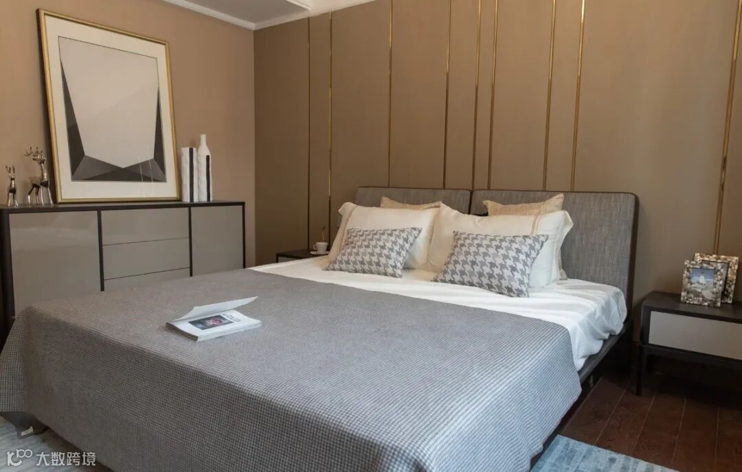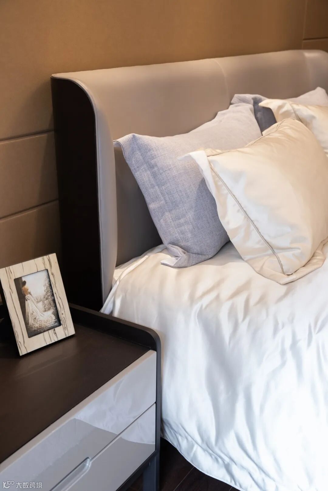 次卧空间配色干净简洁。灰、黑、白在相互融合中带来沉静低调的氛围。自带高级感的灰色家具,搭配中性色背景,气质高雅却不清冷,提升了整个居室的气韵与质感。