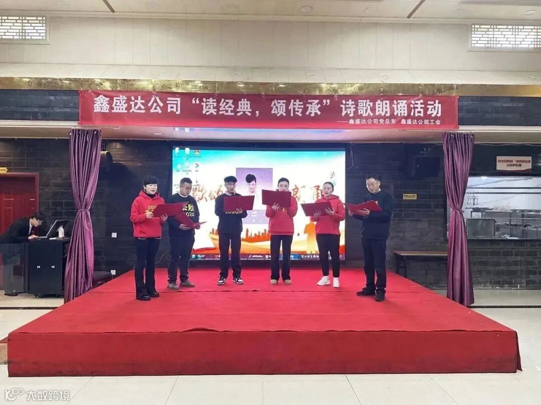 在鼎能集团成立十周年之际,为进一步弘扬学习型、开放型、创新型的企业文化,激发广大员工干事创业热情,增强团队合作精神。12月10日,鑫盛达公司开展“读经典,颂传承”诗歌朗诵主题活动。主题活动由公司党总支主办、公司工会承办。