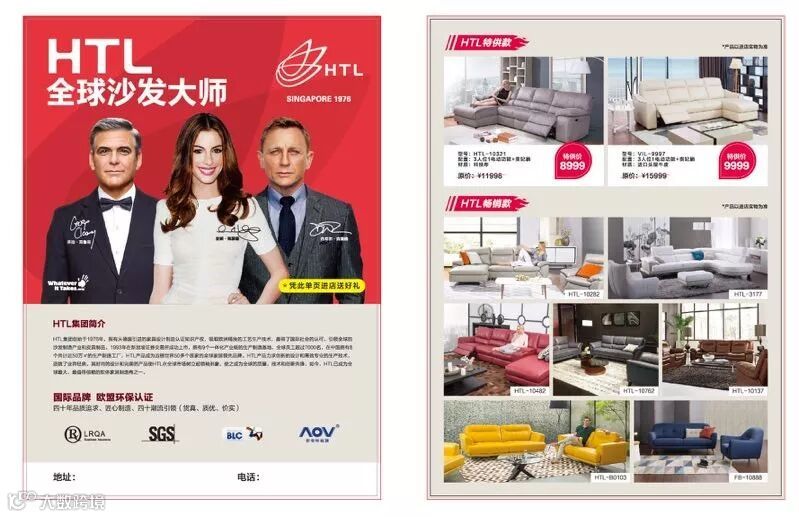 全球沙发大师HTL, 1976年创始于新加坡,在中国拥有8个生产制造基地,平均每月高达1300万平方尺的皮革成品产能位居世界前列,每月超过2000个集装箱的皮革家具出口到全球各地,产品远销全球50多个国家的5000多家品牌零售门店。
