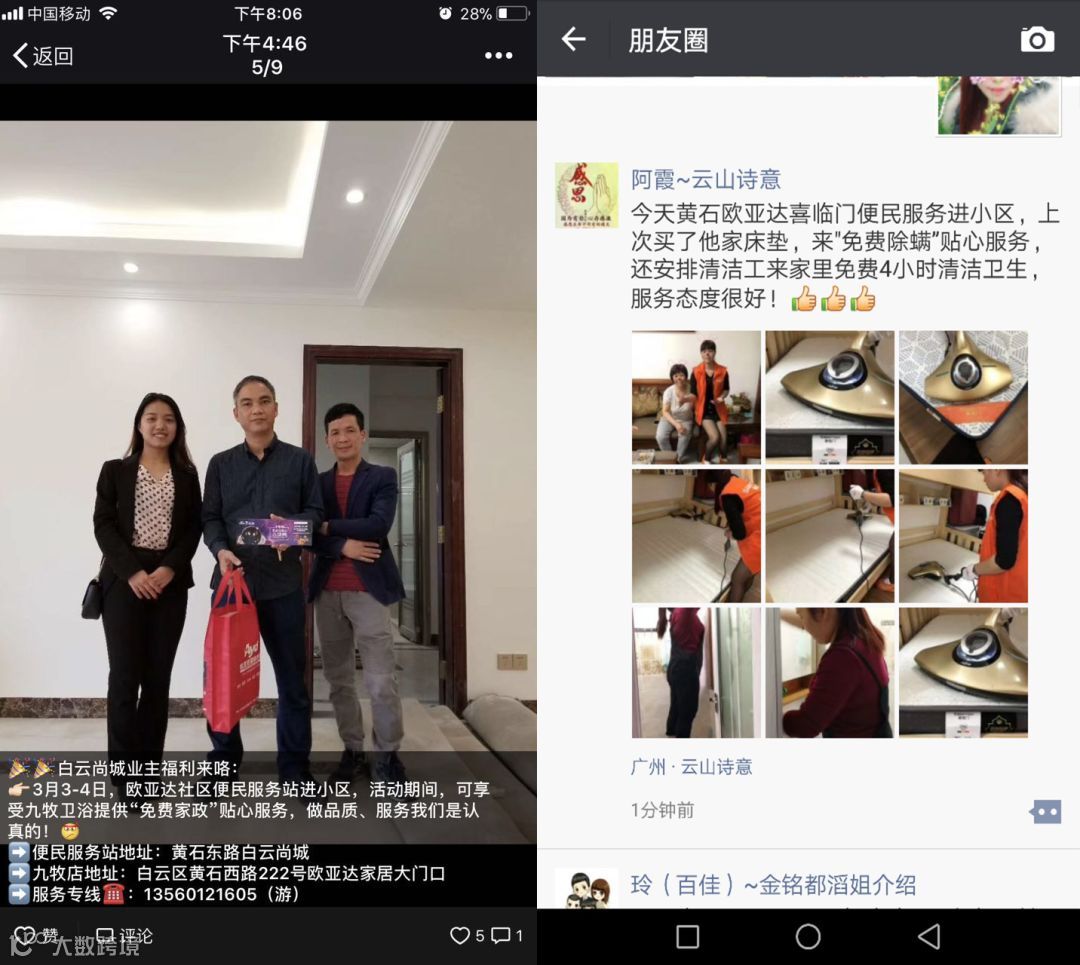 随后,欧亚达工作人员又先后对十多户多次成交的老客户进行了走访看望,每到一户,便详细地询问客户对欧亚达购买产品的使用情况,并对售后服务情况进行了解,听取客户提出的建议,并做好记录,以求更好的完善欧亚达,服务大家。业主还主动在朋友圈分享服务过程,为欧亚达打CALL点赞。