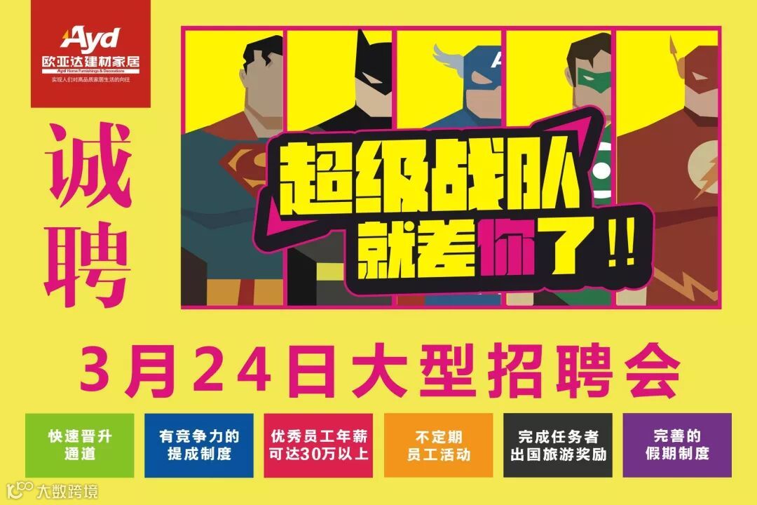 本次招聘会由欧亚达建材家居广州黄石店主办,汇聚了欧派橱柜、百能橱柜、亚材门窗、火星人集成灶、全友家居、艺信装饰、柏雅天尼、欧普照明、亚振国际家居、九牧卫浴、科勒卫浴、穗宝床垫、晚安家居、九品装饰、诺佳、芬淋漆、百得胜衣柜、世友地板、慕思3D等百余家品牌企业。招聘会于2018年3月24日(星期六)10:00-14:00,在白云区黄石西路222号欧亚达家居广场隆重举行。