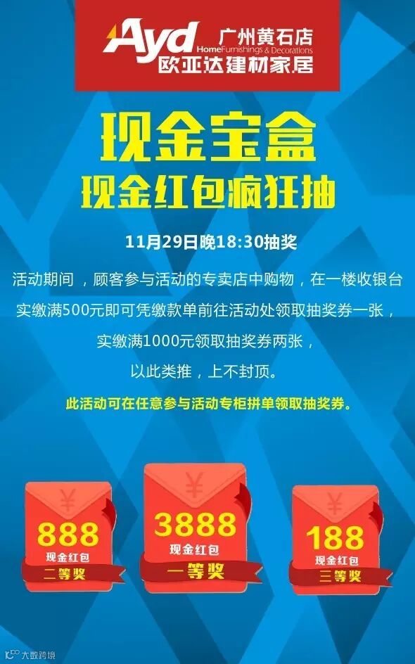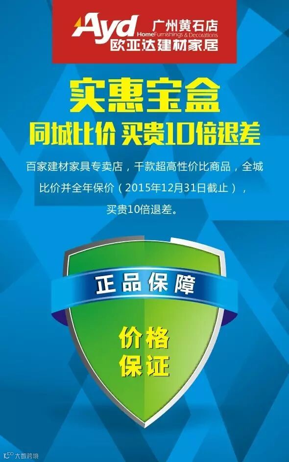活动详情:百家建材家具专卖店,千款超高性价比商品,全城比价并全年保价(2015年12月31日截止),买贵10倍退差。