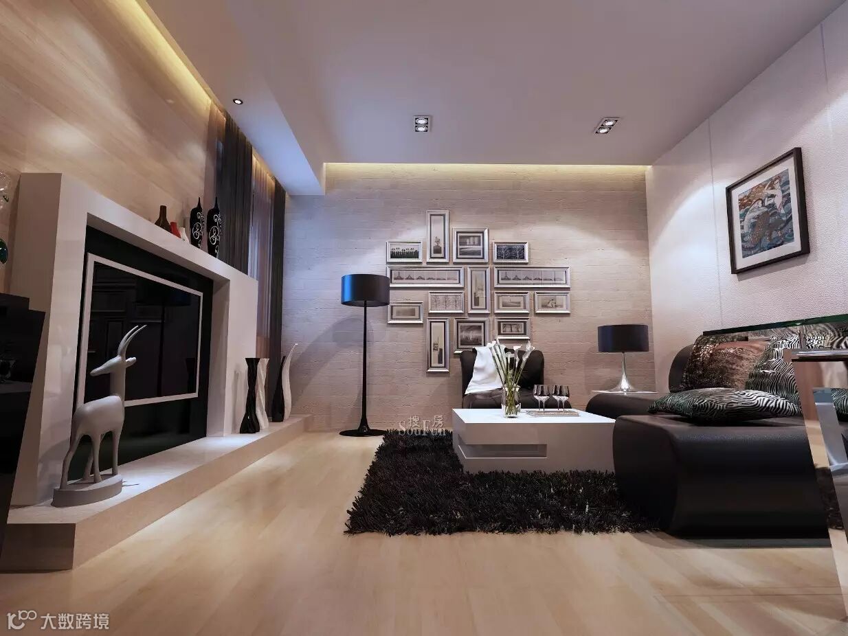 大地毯+油画+北欧式壁炉电视背景墙+木质地板