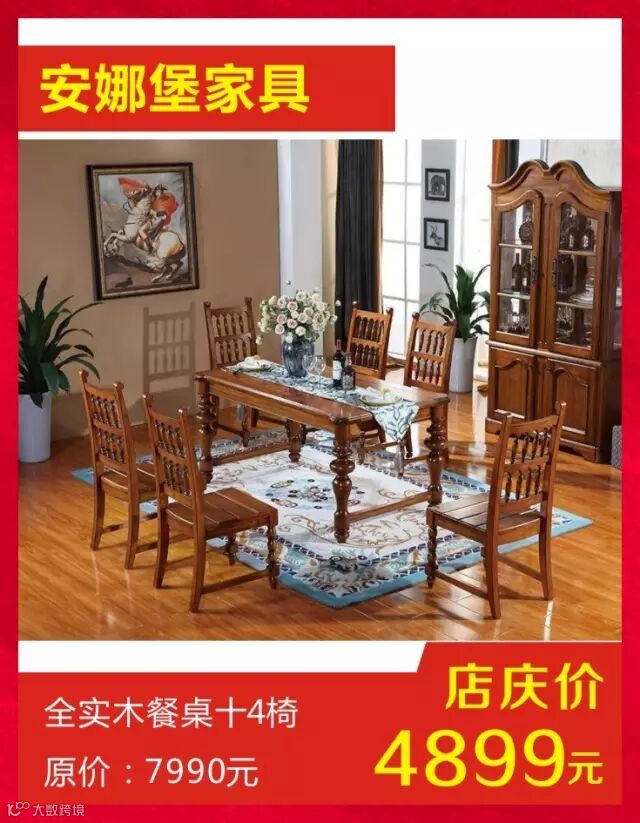 店庆价4488元 皇朝家私全实木餐台椅1+4