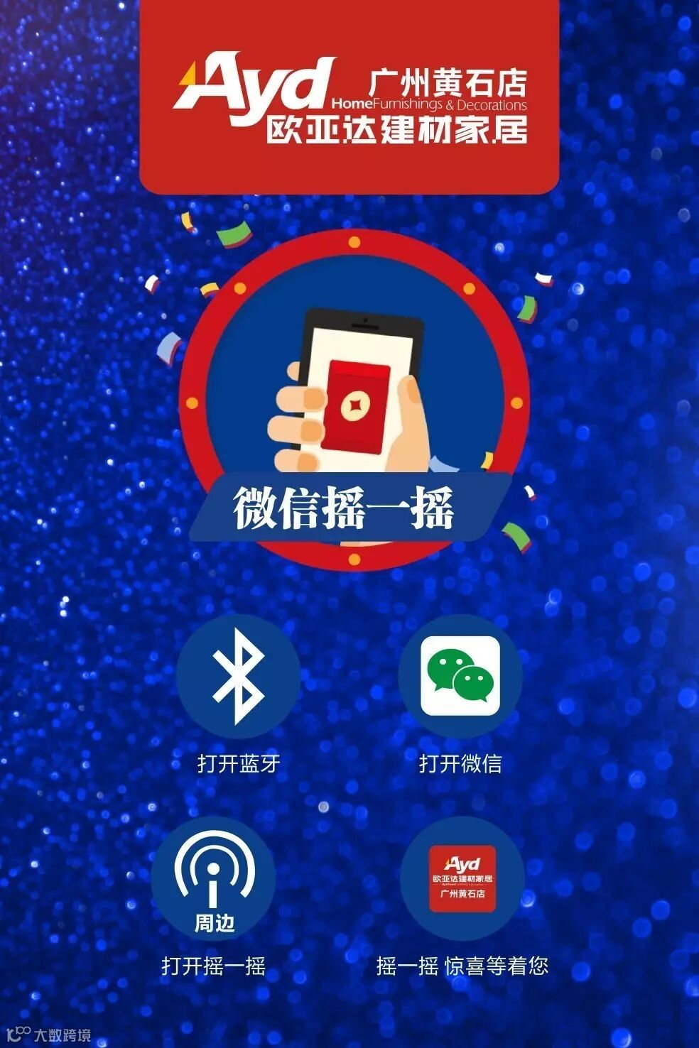 活动详情:商场将免费送出300张抽奖券,顾客打开蓝牙通过微信摇一摇即可有机会抽得商场活动抽奖券一张,顾客可当场使用抽奖券参与抽奖环节,就有机会抽取55寸液晶电视等时尚家电。届时,商场会广播出该环节的具体时间节点,顾客在广播提示后即可参与此活动。