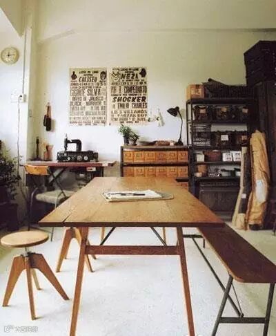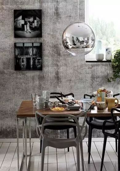 深色系家具加原木色餐桌椅的搭配,却没有怪异的感觉 ~ 这得益于地面颜色的选择,不选用瓷砖,只是简单地刷成白色。这样的餐厅让人感觉非常的闲适呢 !