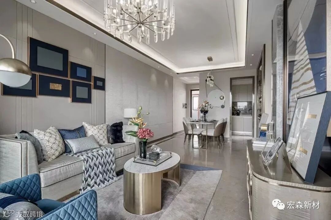 高级灰永远都是永恒的主题,一切高级灰的色调都是永不过时的。而且搭配上蓝色系的时候,整体都是倾向于沉浸调性的色彩,都是属于一种冷静的色调。它们的搭配可以将优雅沉稳冷静的魅力最大化的彰显出,运用在家具设计上的时候,也可以为我们营造出时尚的感觉,结合上现在流行的轻奢元素,这一股子高雅范就体现出来了。