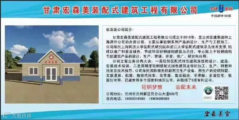 兰州宏建集团为老区人民脱贫攻坚,在宕昌县哈达铺等19个乡镇,援建了52个乡村装配式节能环保、绿色零甲醛、标准化卫生室。