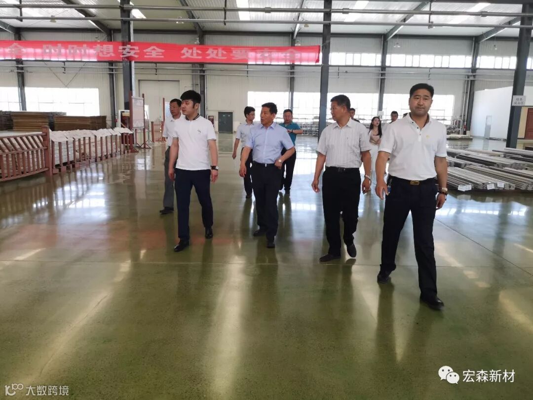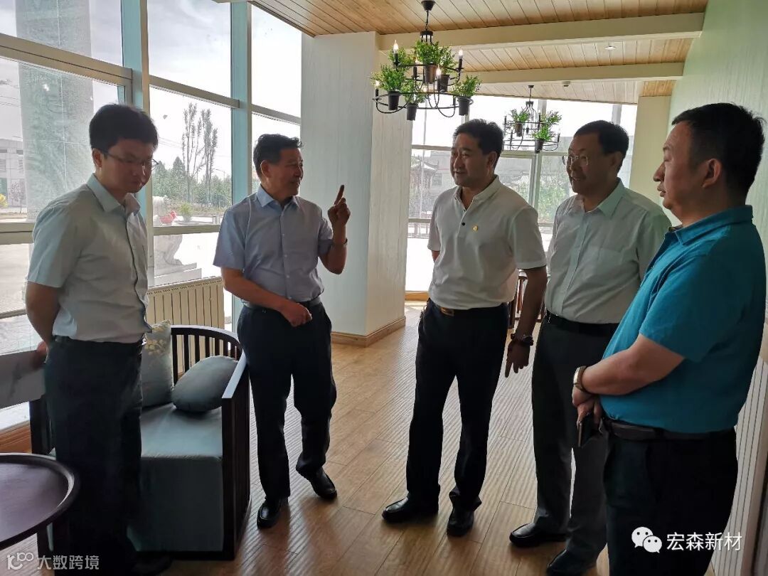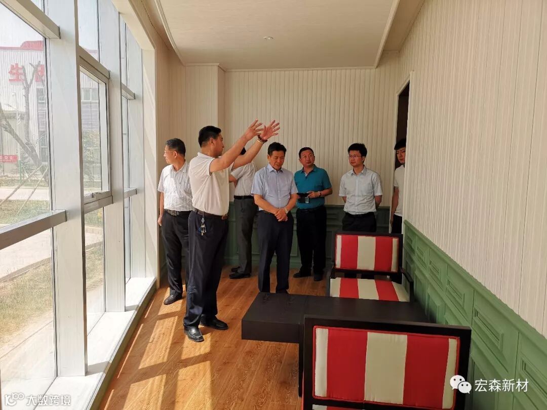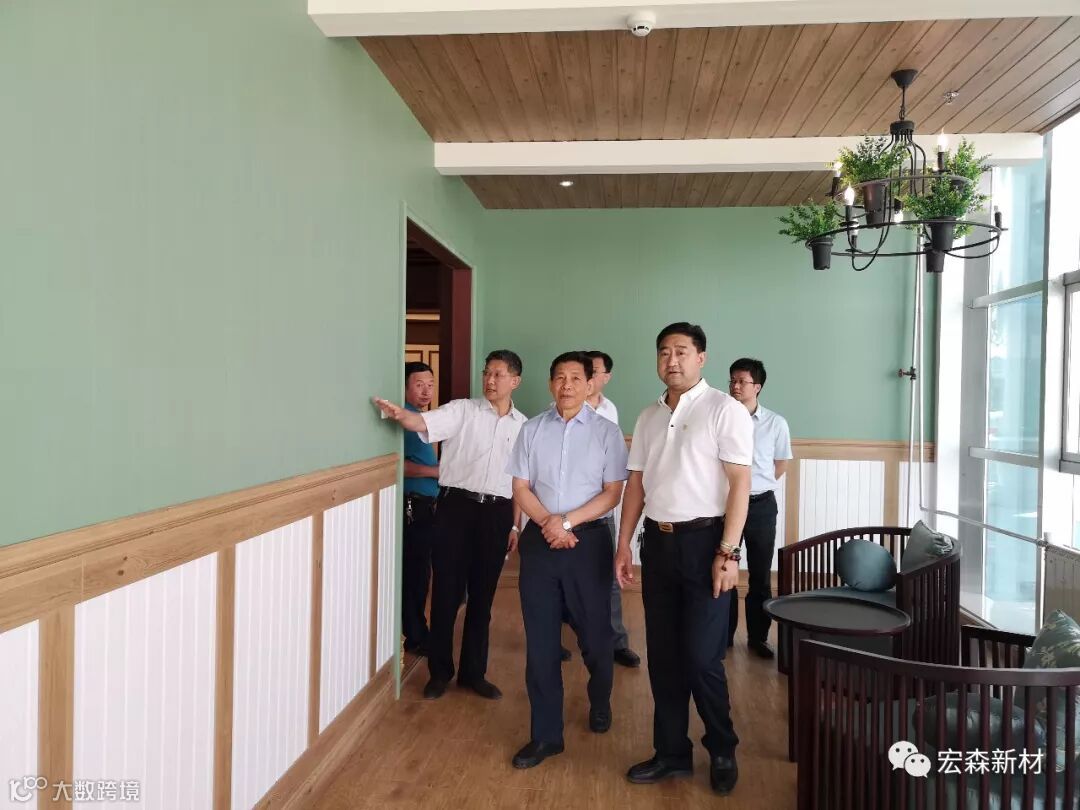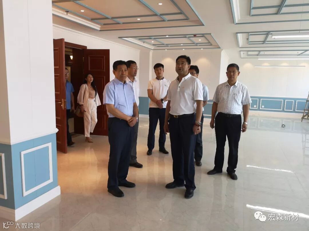2018年6月14日,中国建材联合会乔龙德会长在甘肃省建筑材料工业协会党组书记、会长朱建海,中国八冶建设集团董事长李万福,中建材祁连山水泥集团董事长脱利成,兰州蓝天浮法玻璃集团、兰州市工业投资集团董事长刘伟,中国建材报甘肃站站长王焱田等领导陪同下莅临宏建集团兰州新区新材料科技产业园。集团公司党委书记、董事长田炫宏及公司相关领导对考察团的到来表示热烈欢迎,并陪同考察团先后对甘肃宏森新材料科技有限公司办公大楼生物质新材料产品装饰的效果展厅、户外园林景观、生物质新材料生产线以及后处理车间进行了全面细致的调研、观摩。