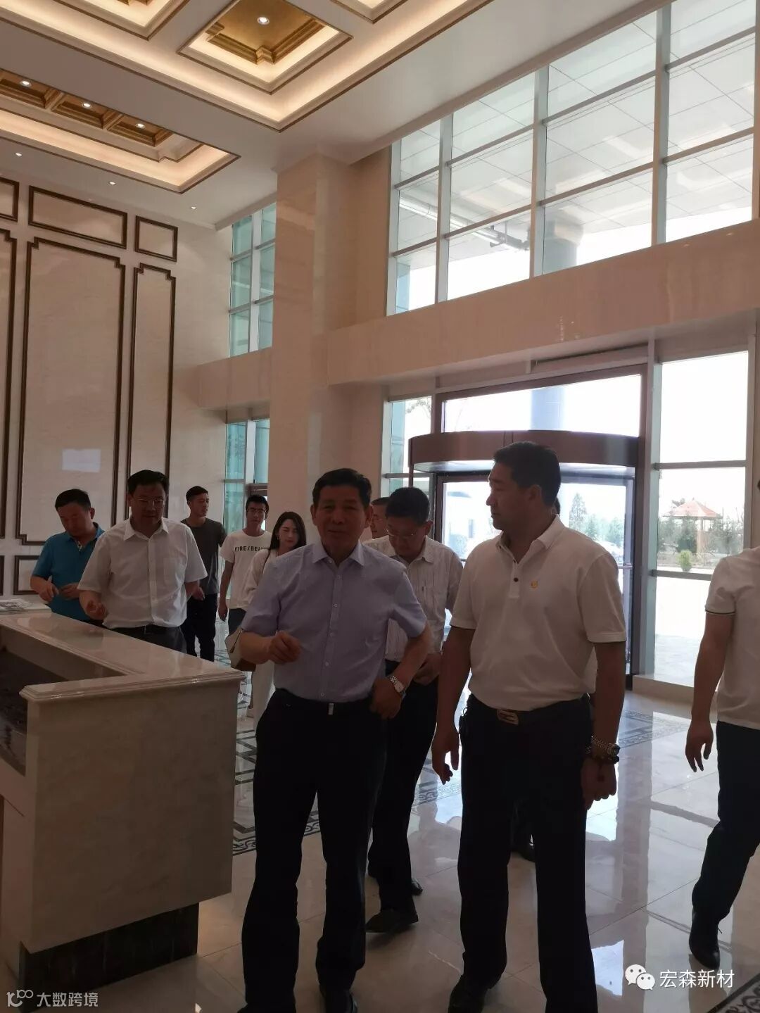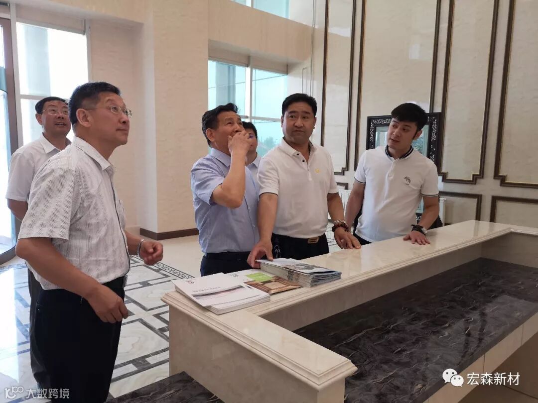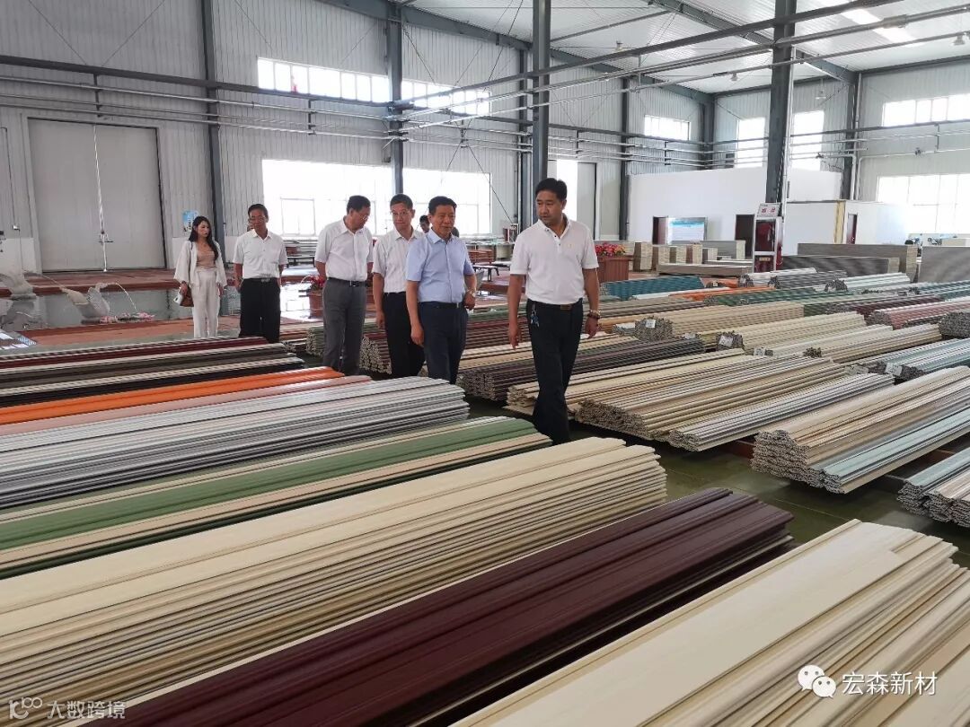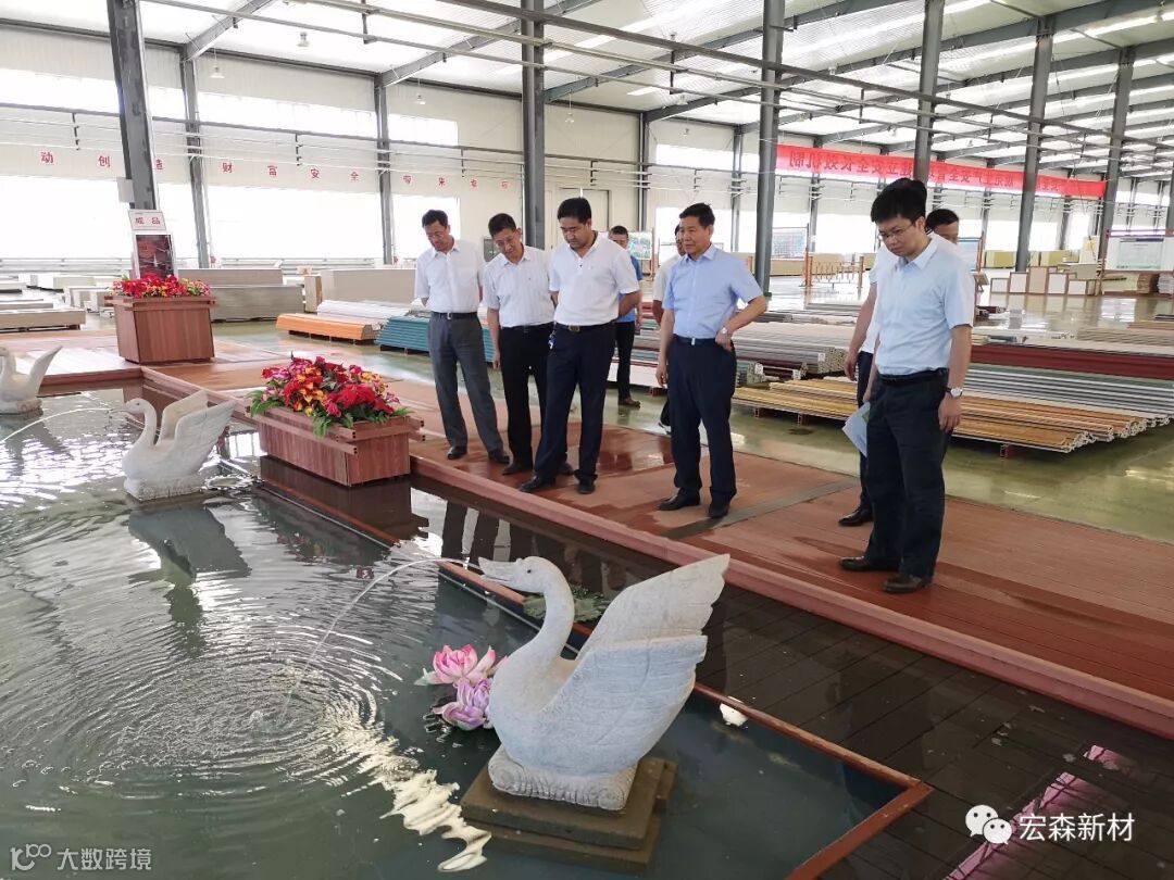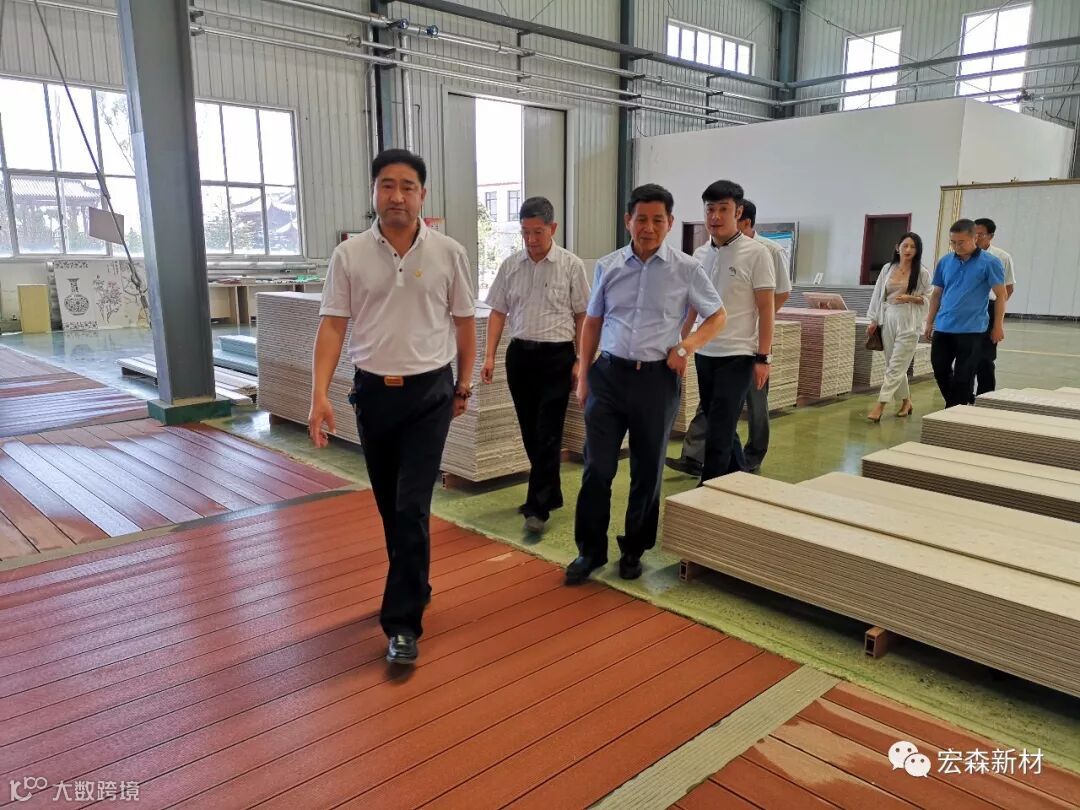 2018年6月14日,中国建材联合会乔龙德会长在甘肃省建筑材料工业协会党组书记、会长朱建海,中国八冶建设集团董事长李万福,中建材祁连山水泥集团董事长脱利成,兰州蓝天浮法玻璃集团、兰州市工业投资集团董事长刘伟,中国建材报甘肃站站长王焱田等领导陪同下莅临宏建集团兰州新区新材料科技产业园。集团公司党委书记、董事长田炫宏及公司相关领导对考察团的到来表示热烈欢迎,并陪同考察团先后对甘肃宏森新材料科技有限公司办公大楼生物质新材料产品装饰的效果展厅、户外园林景观、生物质新材料生产线以及后处理车间进行了全面细致的调研、观摩。