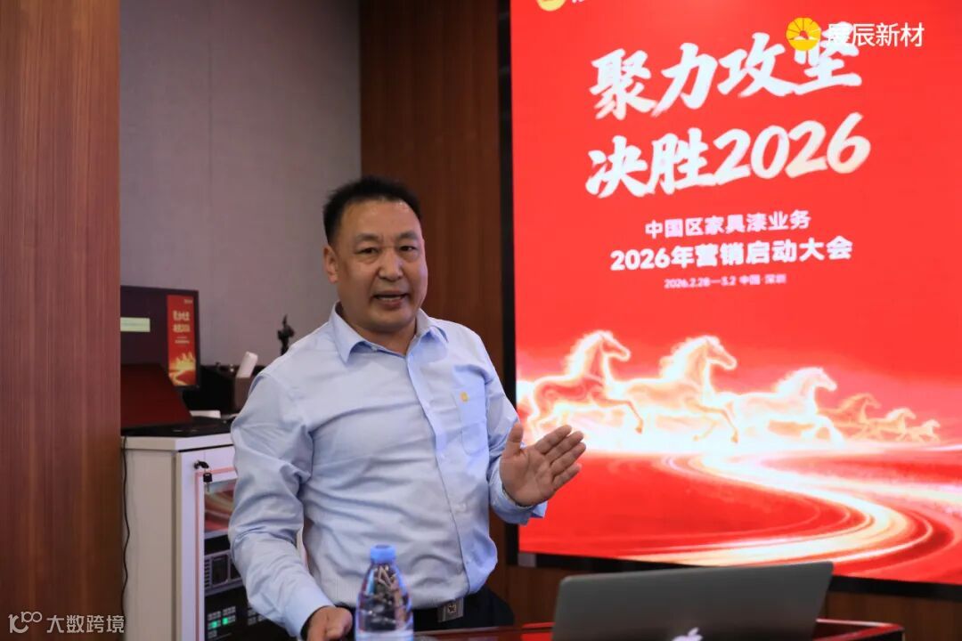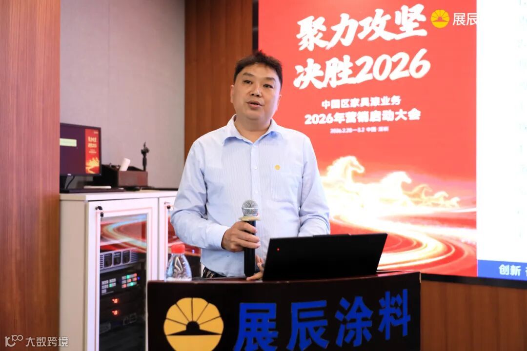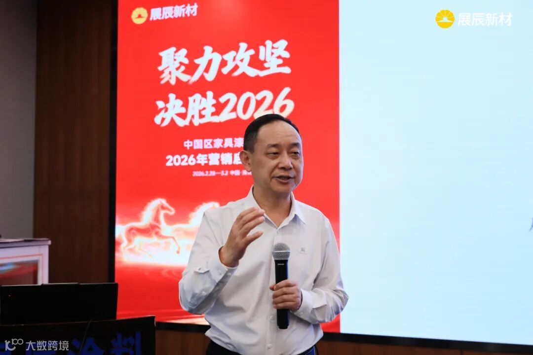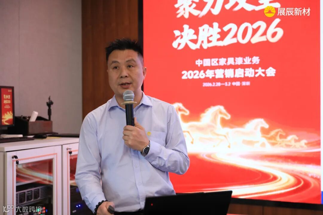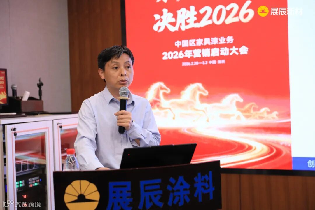 会议在展辰集团董事长陈冰的致辞中拉开帷幕。他将展辰团队比作“万马奔腾”的方阵,肯定了2025年取得的成绩:在行业寒流中稳住基本盘,工业漆实现突破,越泰市场逆势增长,“爱木”系列产品成功上市,水性木器漆份额提升,成本管理初见成效。