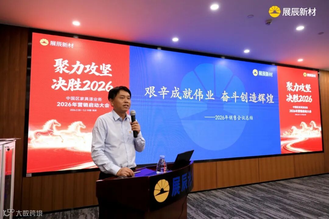随后,展辰新材常务副总裁全松林作会议总结。他指出,本次大会既是对过去工作的复盘总结,更是面向未来的攻坚动员。全司上下要增强紧迫感,迅速将会议精神转化为实际行动,各区域要强化协同,坚持全国一盘棋,聚焦产品与客户,深耕细分市场,全力以赴完成2026年销售目标,推动业务实现新突破。