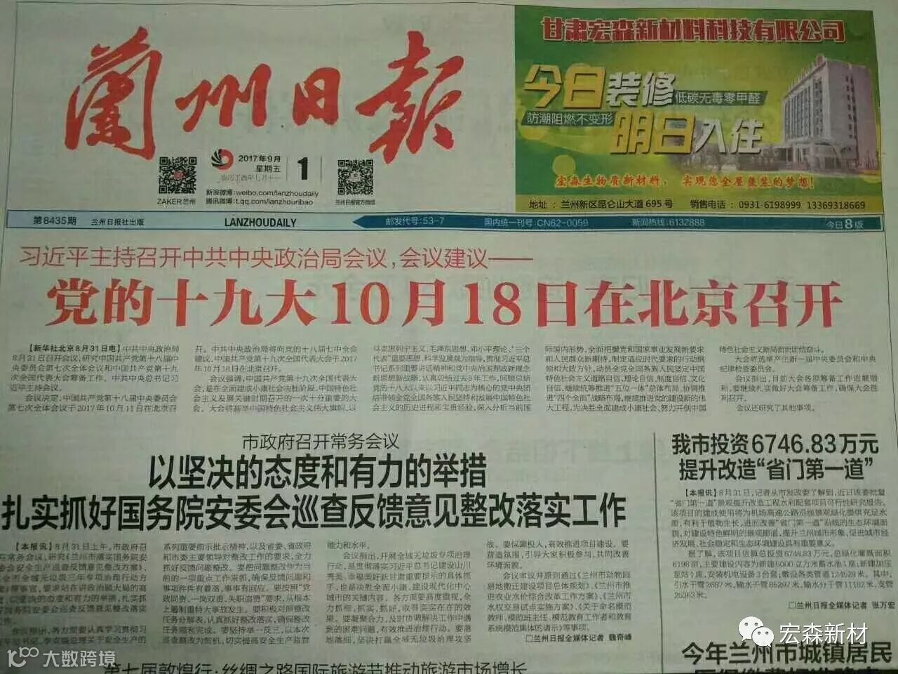 甘肃宏森新材料科技有限公司是兰州宏建建业集团投资6亿元建设的全资子公司,是一家集研发、生产、加工、设计、销售及应用为一体的高科技有限公司。公司位于甘肃省兰州新区昆仑山大道北段695号,占地面积300多亩,该项目于2014年8月启动建设,2015年底建成投产。在2015年引进德国最先进的生物质技术生产线36条,年产高分子生物质装饰型材6万多吨。 产品经国家化学建筑材料检测中心检测, 各项理化性能指标均符合国家标准。本着“质量第一,顾客第一”的产品理念,自产品上市以来受到我省各级领导及广大消费者的喜爱和好评,并远销迪拜、土库曼斯坦、吉尔吉斯斯坦等国。
