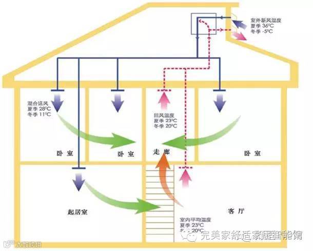 中央新风系统换气不仅仅是排去污染的空气,中央新风系统除了有换气功能外,还具有有除臭、除尘、排湿、调节室温的功能。