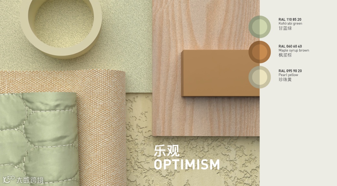 本组配色以自然活力与温暖治愈为核心,通过甘蓝绿的生机、枫浆棕的包容与珍珠黄的乐观,为空间注入如热带晨曦般的蓬勃朝气,堪称都市生活的能量充电站。