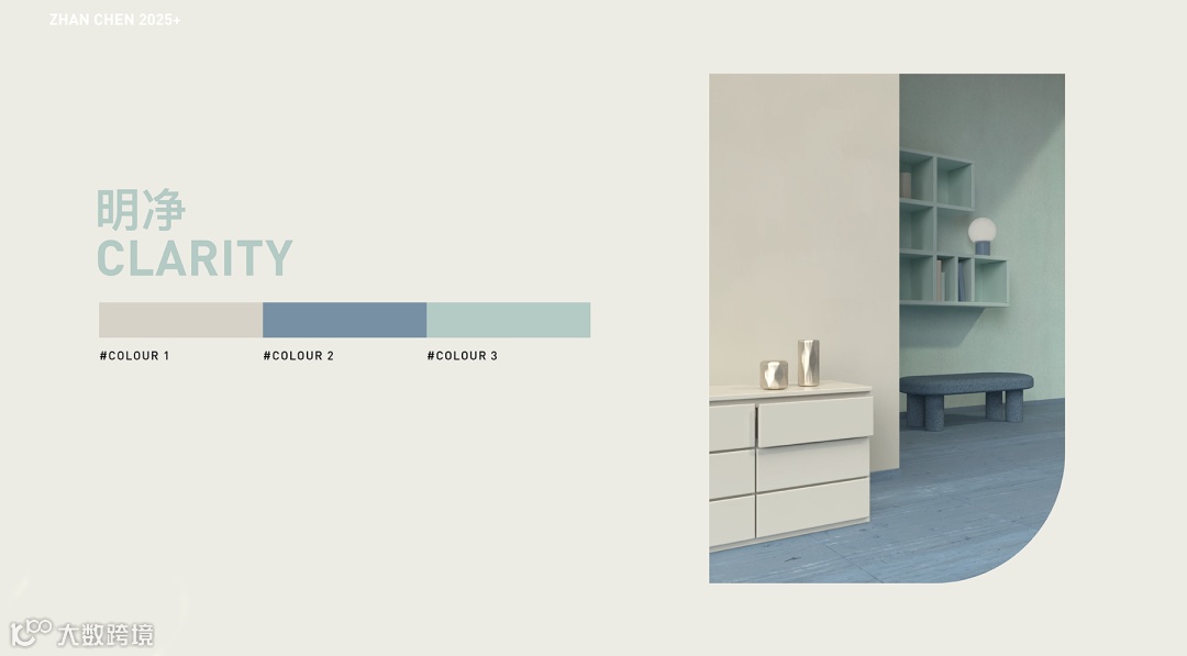 该方案以胡椒白的包容性、建筑蓝的秩序感与明水鸭色的通透性为核心,将理性与感性、人工与自然巧妙融合,为都市家居提供了一种明净疗愈的解决方案。