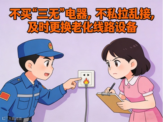 2.不买“三无”电器,不私拉乱接,及时更换老化线路设备。