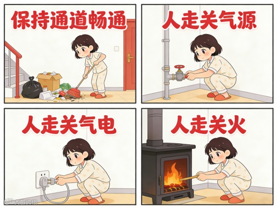 1. 落实“三清三关”,保持通道畅通,人走关火、关电、关气源。