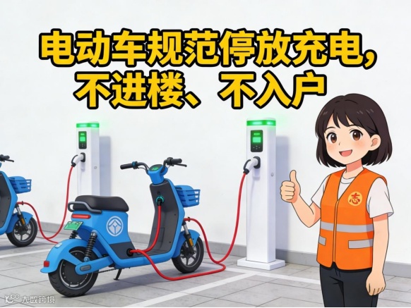 6. 电动车规范停放充电,不进楼、不入户。