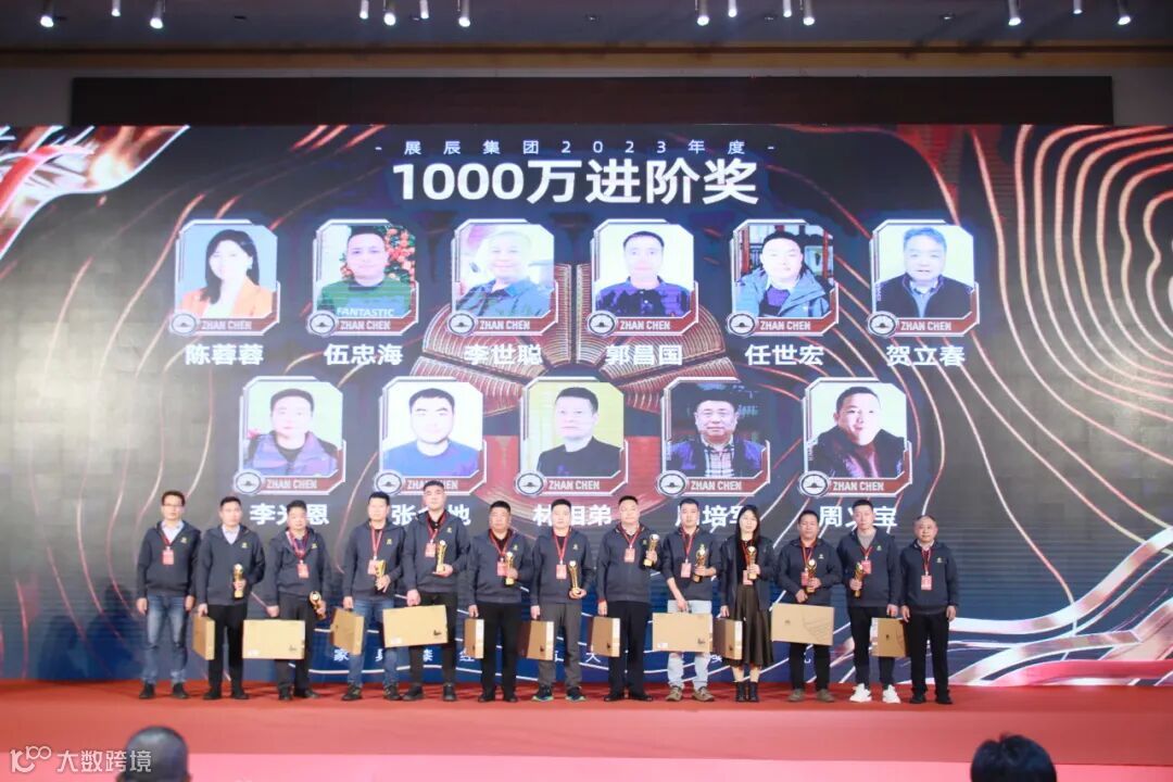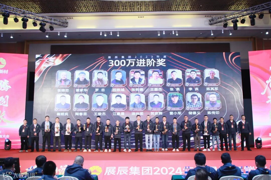 为了对2023年业绩优异的经销商进行表彰,本次大会特颁发了进阶奖、增量奖、销量奖、新锐奖、风云人物奖、终身成就奖等多个奖项。一项项耀眼的成绩,一个个感人的故事,一群群不凡的奋斗者,用他们对展辰事业的热爱,书写了人生的风采。